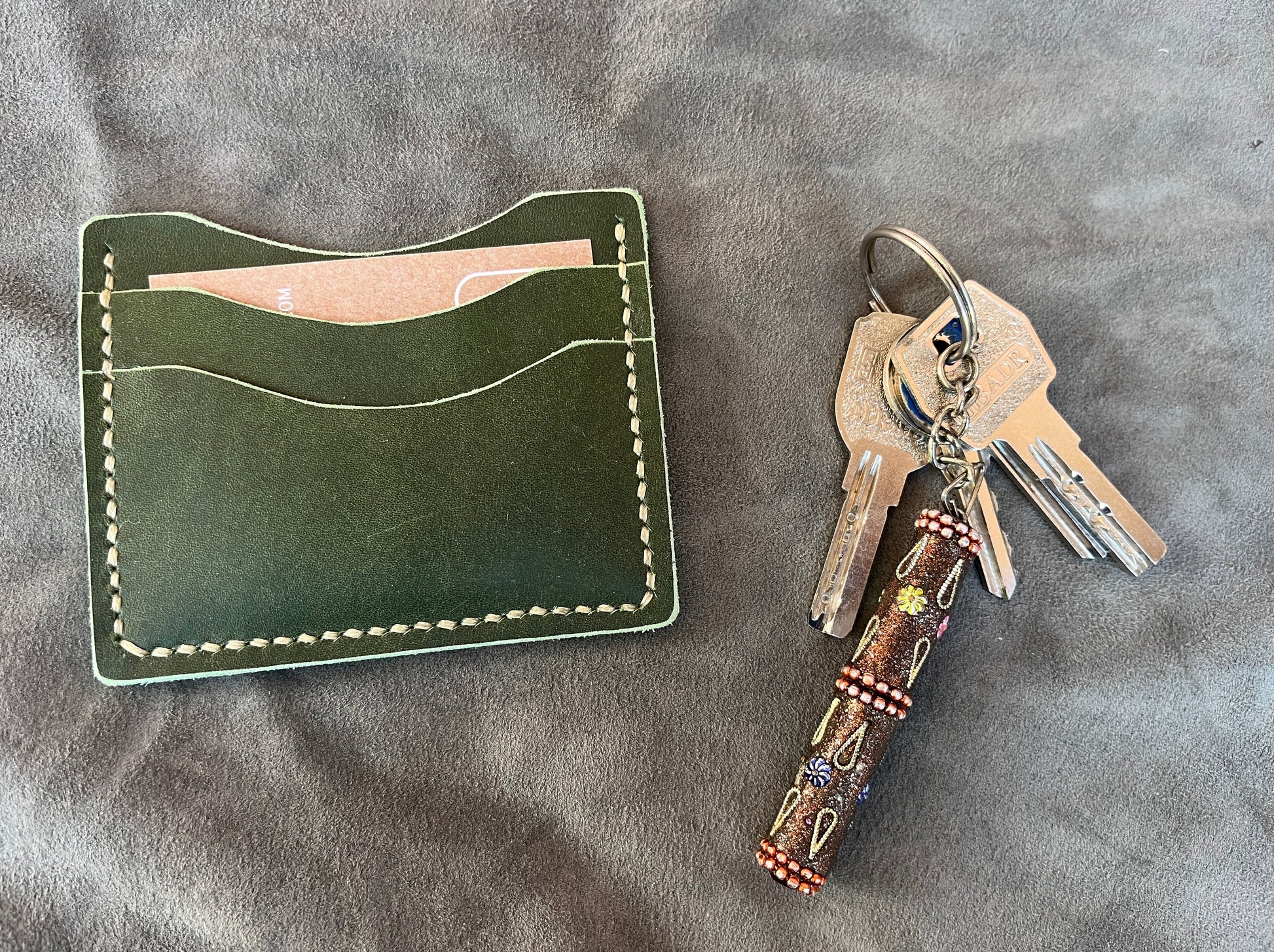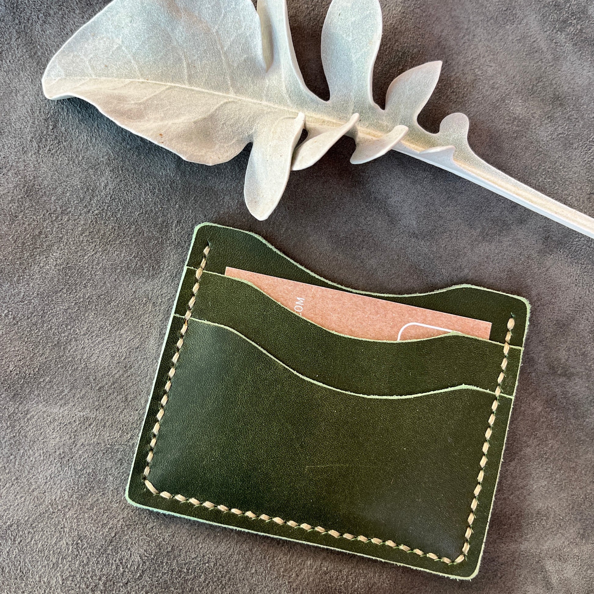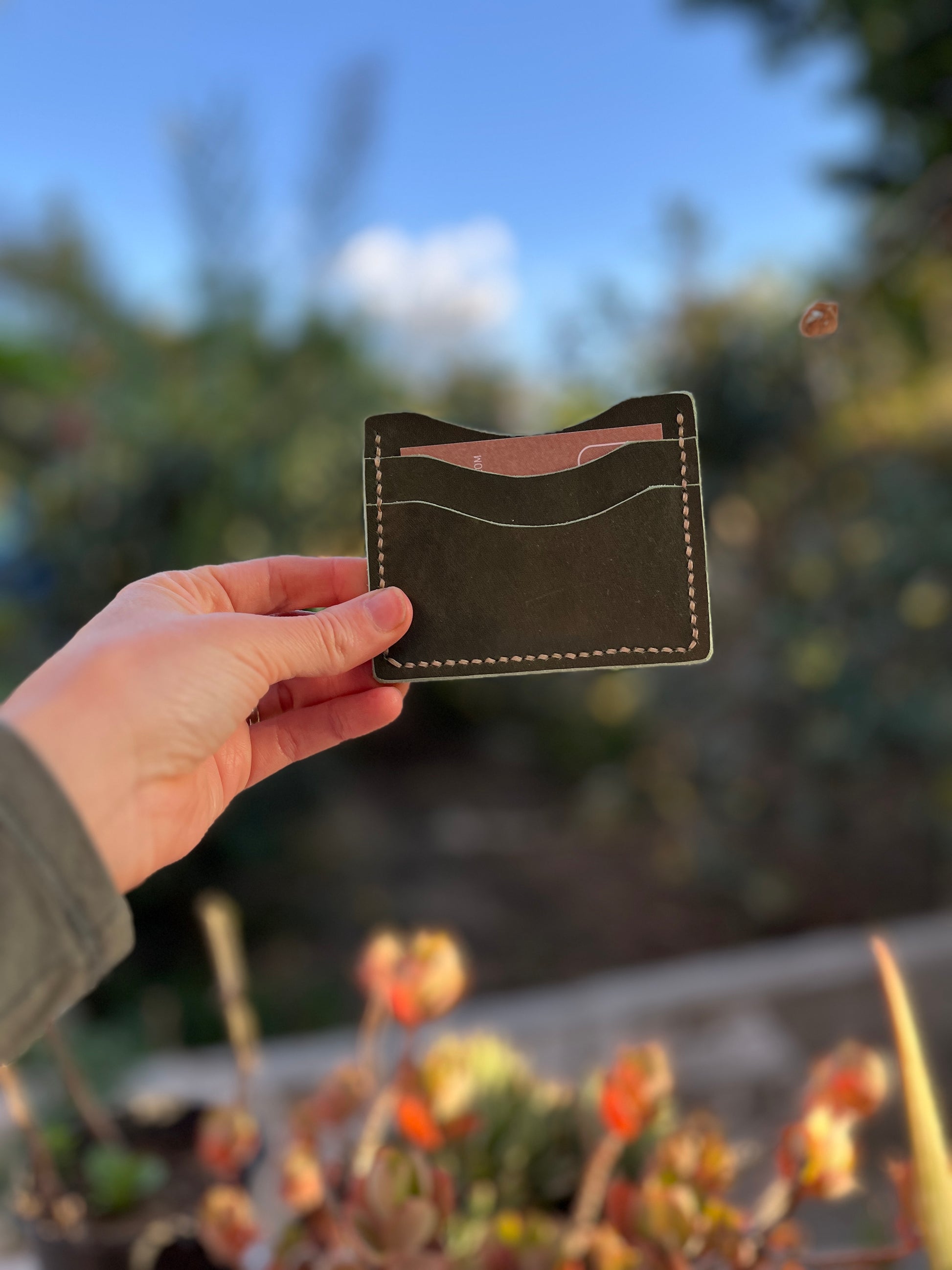 Crafted with natural cow leather, this wallet is made to last. Cut, glued, assembled, stitched, and finished by hand, guaranteeing a quality product. This wallet has 2 credit card slots and a larger pocket to carry folded currency. It's big enough for everyday carry, small enough to fit in your pocket easily.
