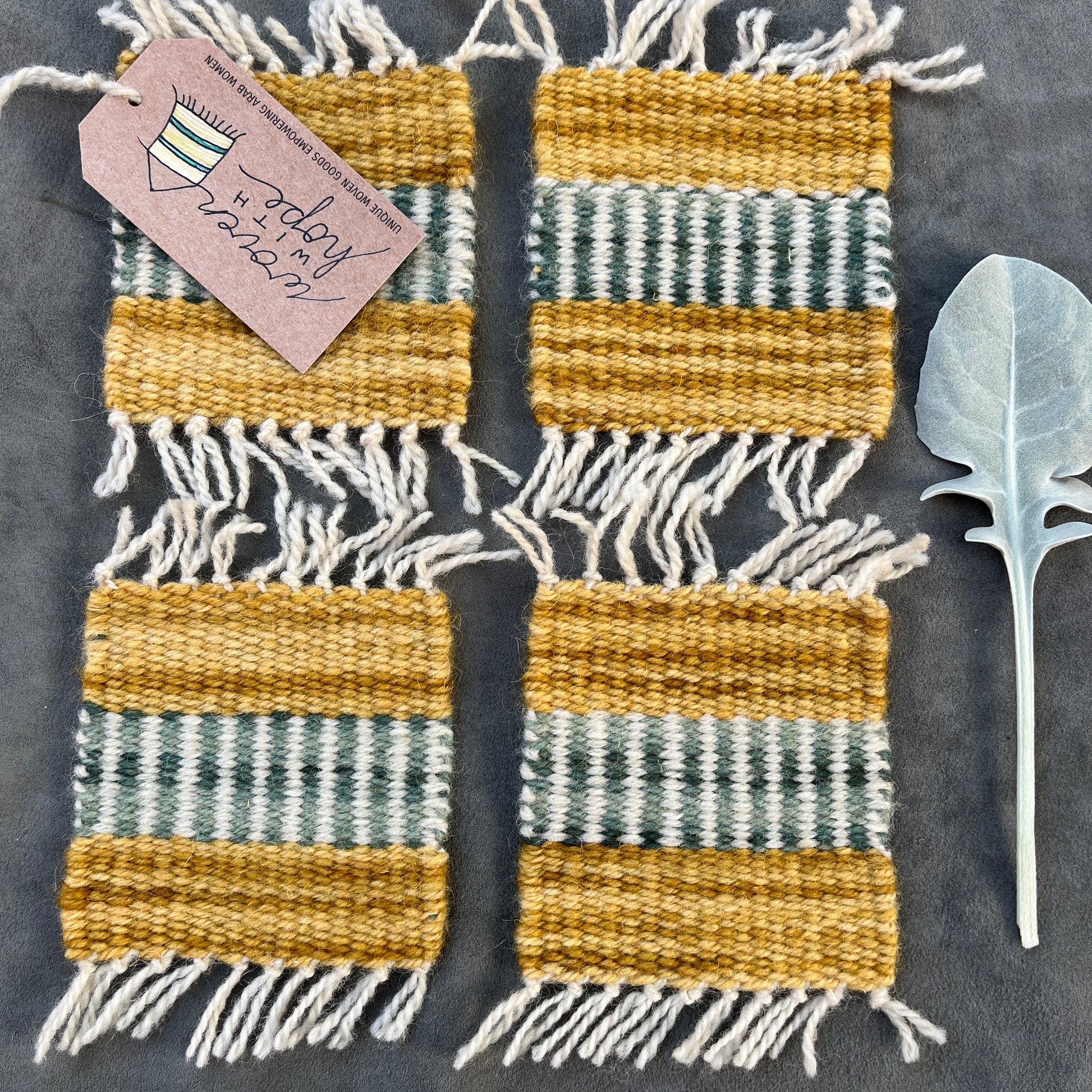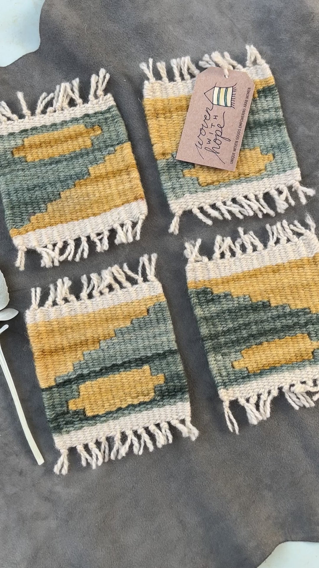 Because wool is a natural insulator, these coasters will protect your furniture from heat and prevent rings, or they also work beautifully as candle or plant mats. You will receive coasters in the colors pictured, but we cannot guarantee a specific pattern.