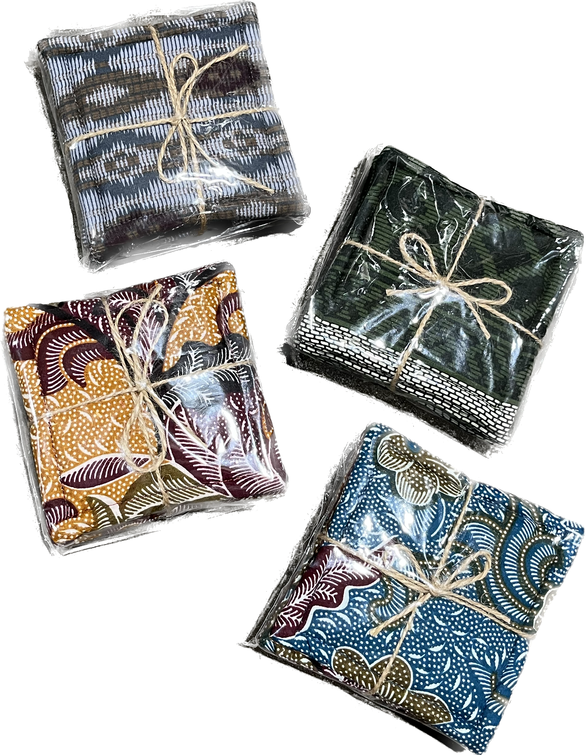 These coffee coasters are hand-made in Indonesia with unique, local patterns!