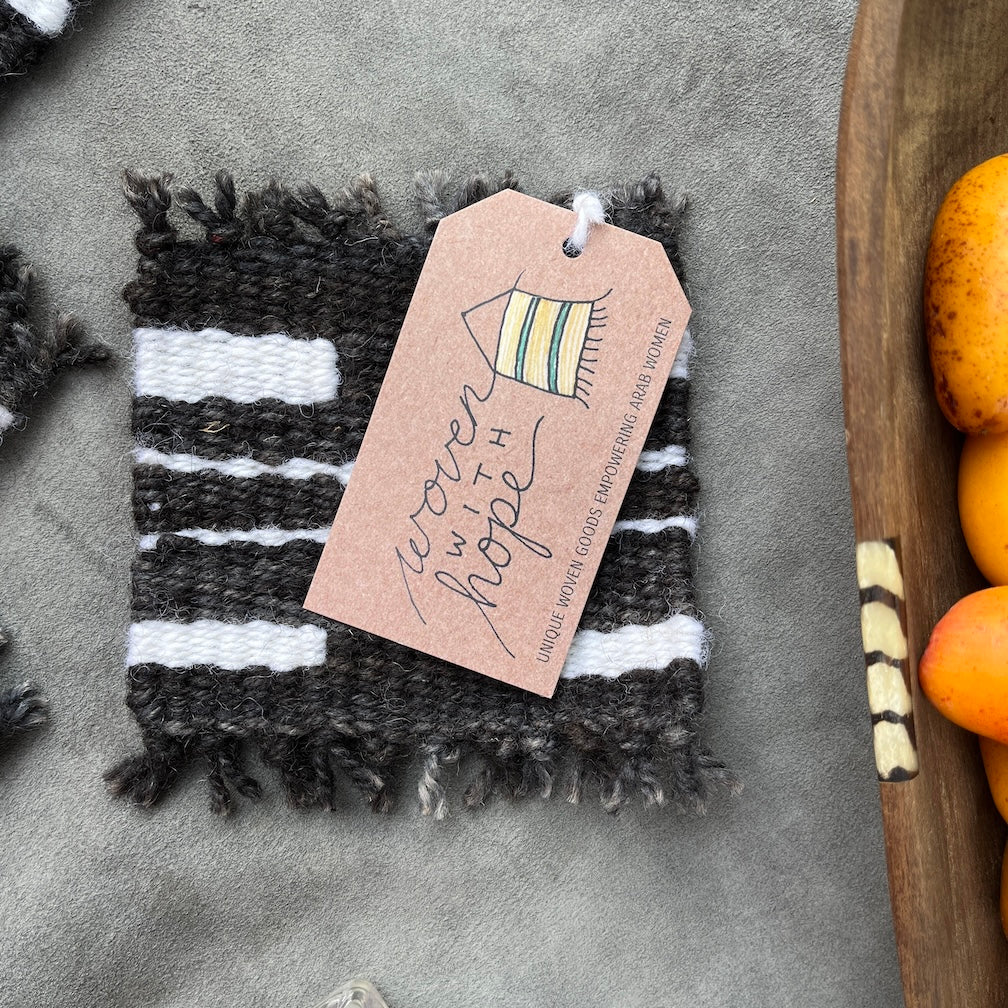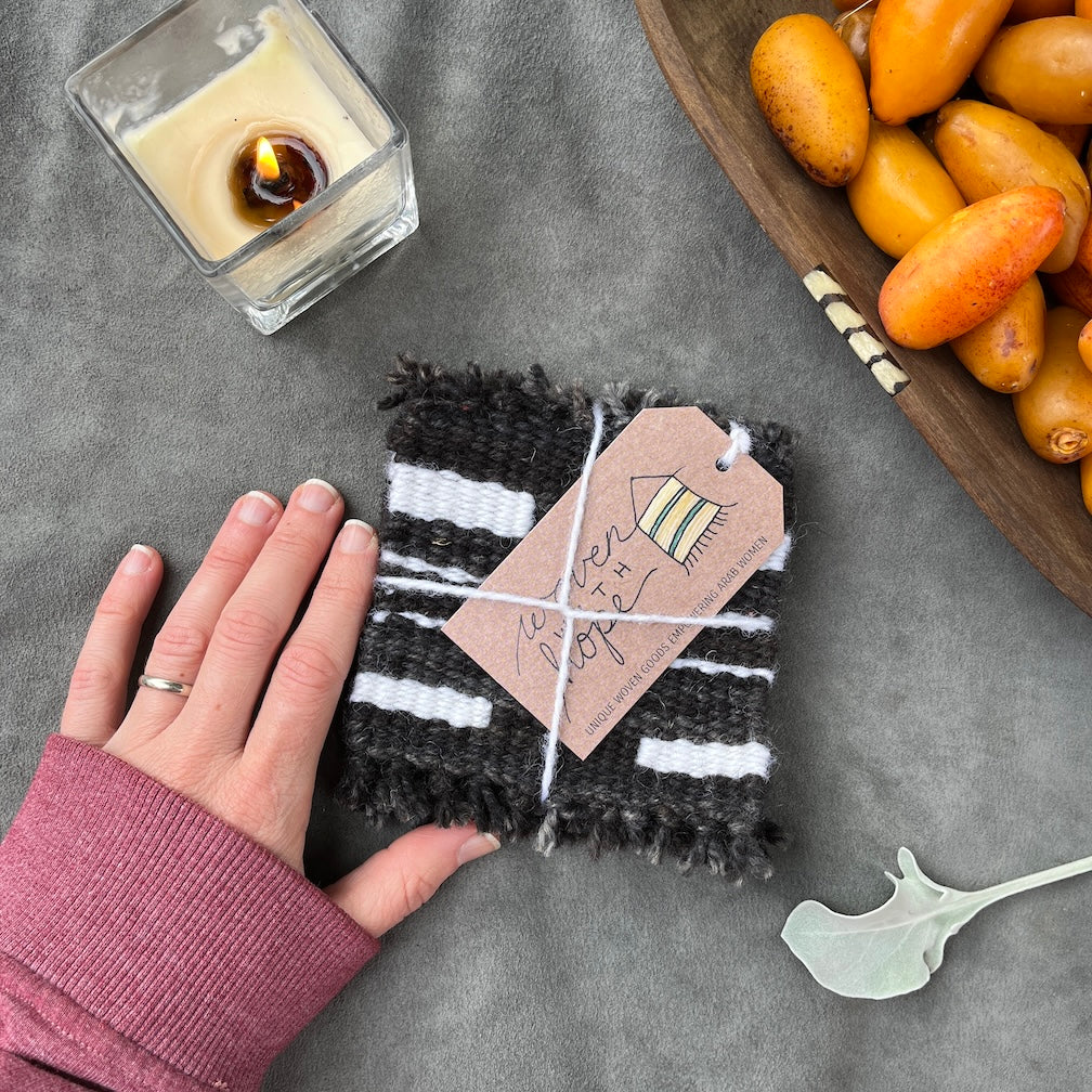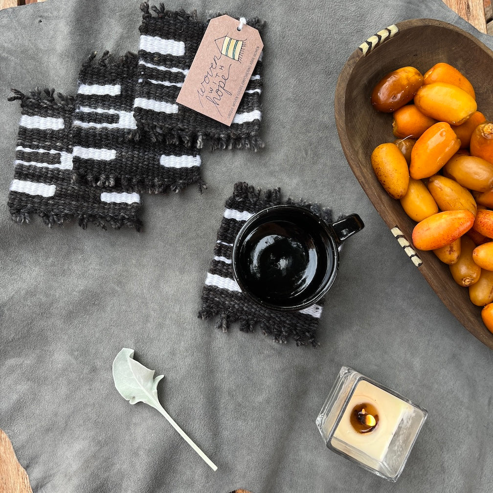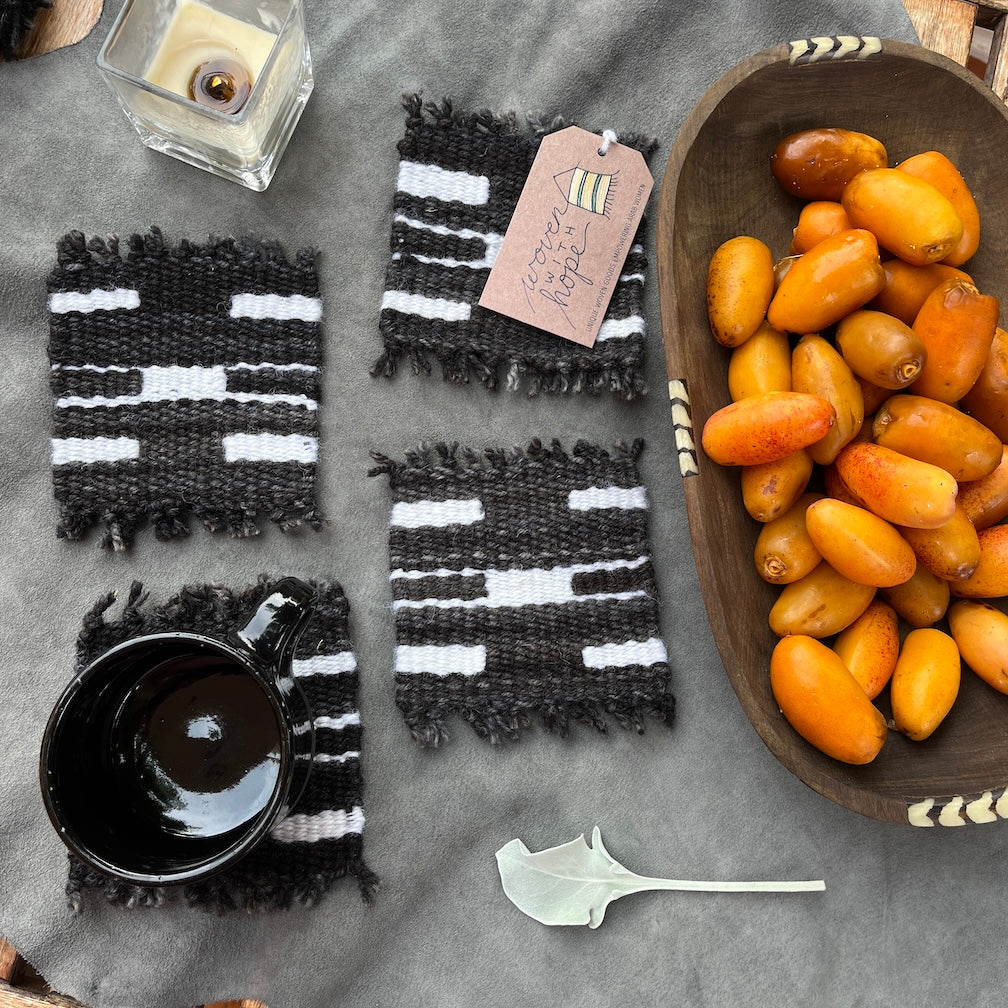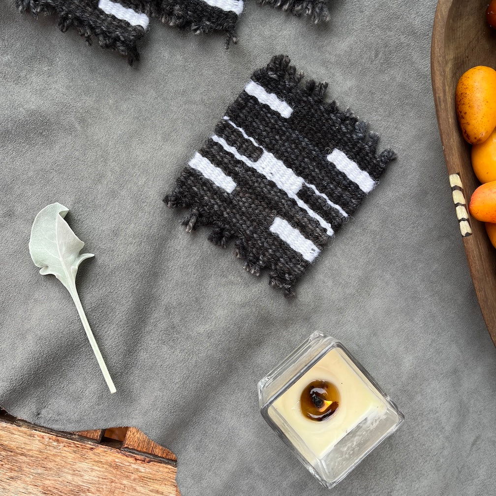 Because wool is a natural insulator, these coasters will protect your furniture from heat and prevent rings, or they also work beautifully as candle or plant mats. The coasters' black and white design goes well with almost any style of decor.