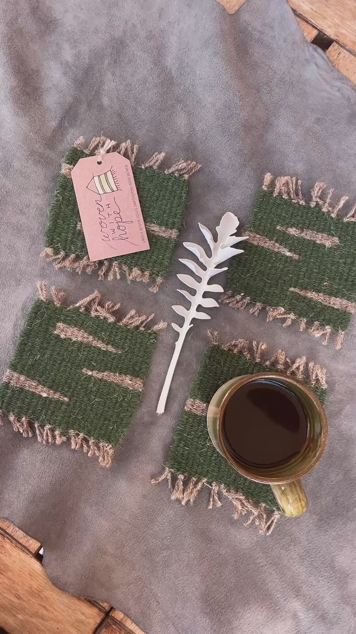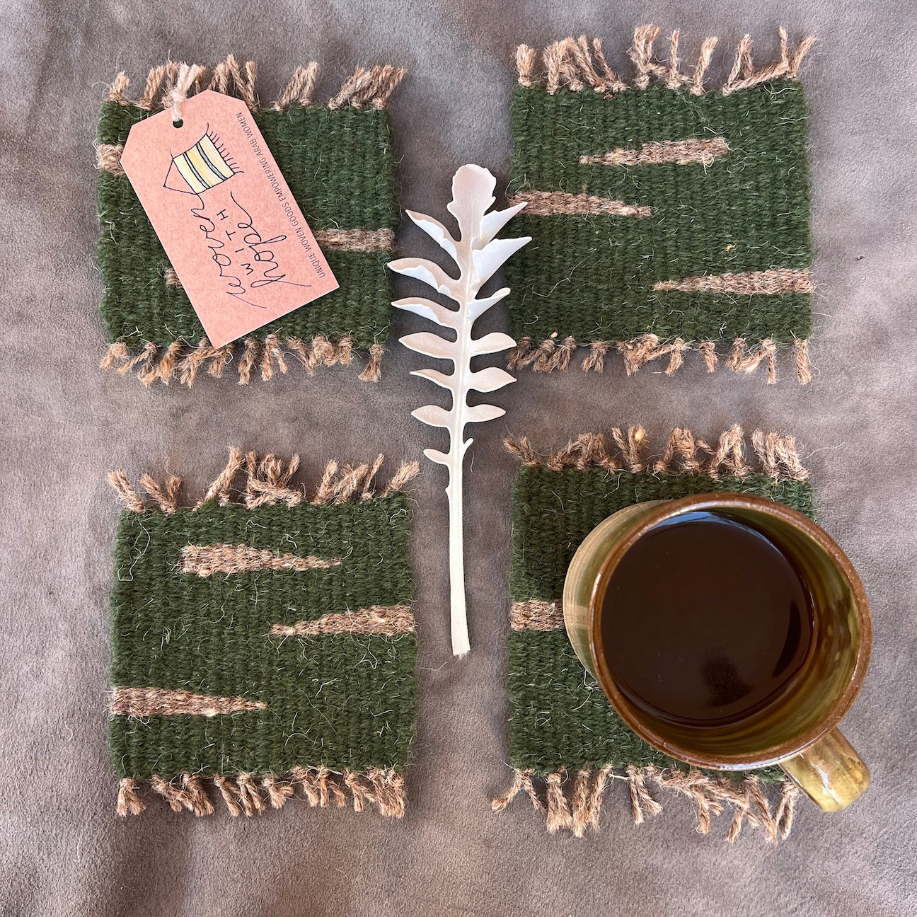 Because wool is a natural insulator, these coasters will protect your furniture from heat and prevent rings, or they also work beautifully as candle or plant mats. The coasters' green and gray design is perfect for the men in your life or to blend into your existing decor.
