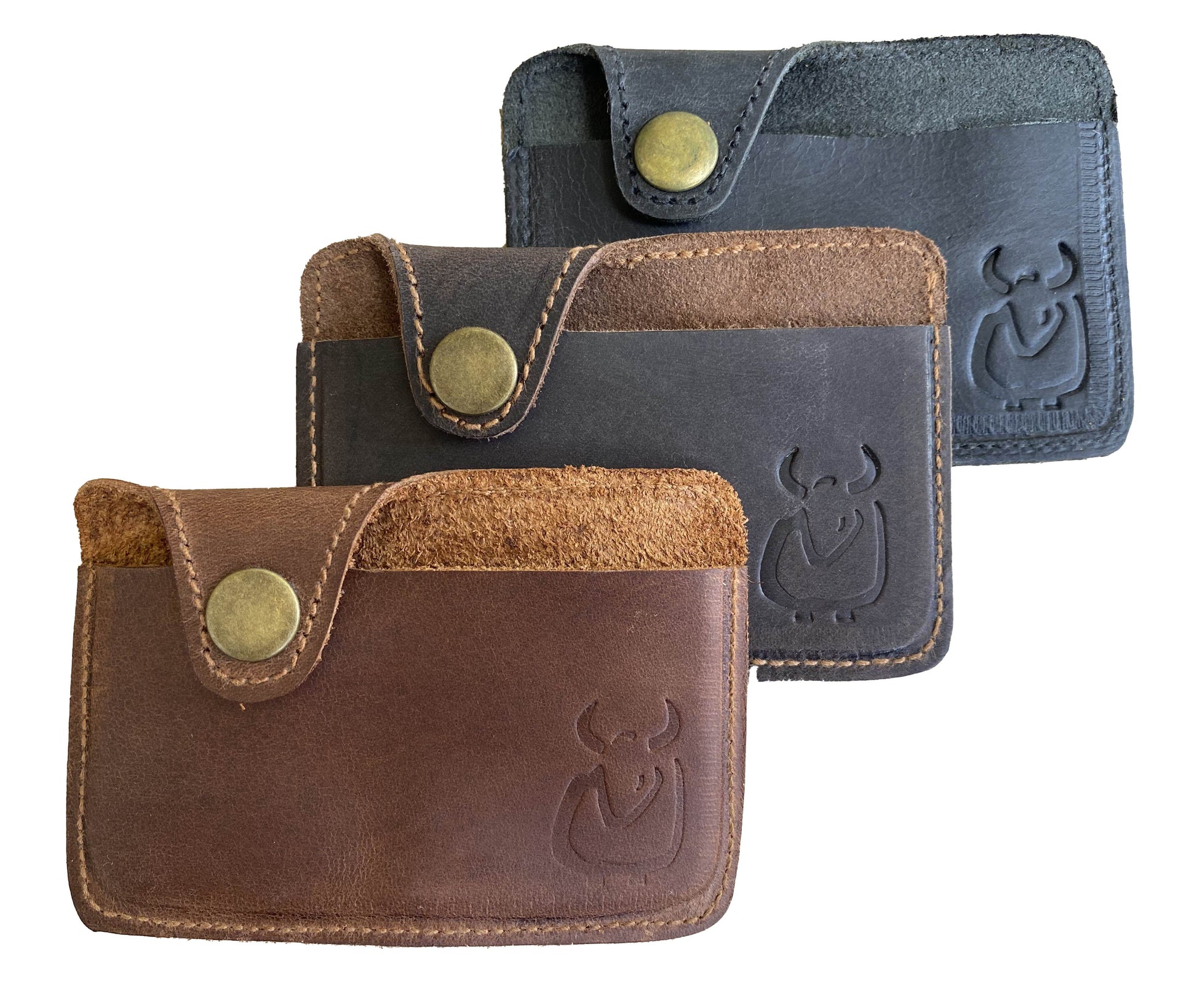 A safe home for your important items, our credit cards holders are made to last a lifetime. Each holder carries two credit cards, a driver's license and some cash. Made out of thick, eco-friendly vegetable-tanned leather, strong stitching, and a sturdy button, your cards are well-protected.
