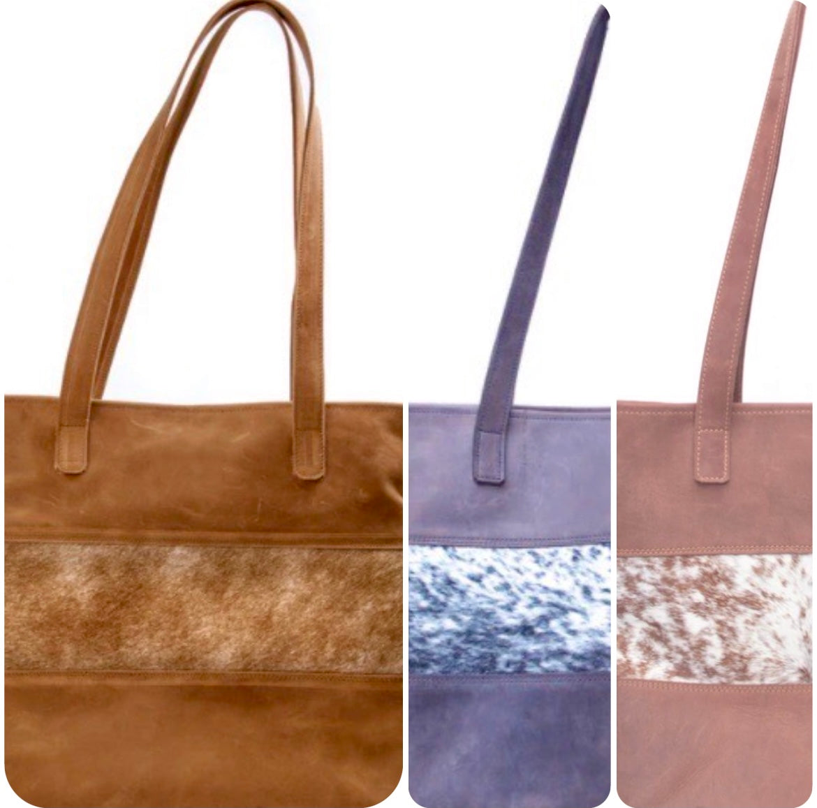 A twist on the Kilele Tote, The Kathy combines quality leather with hand-selected hide patterns to make a subtle yet unique statement.