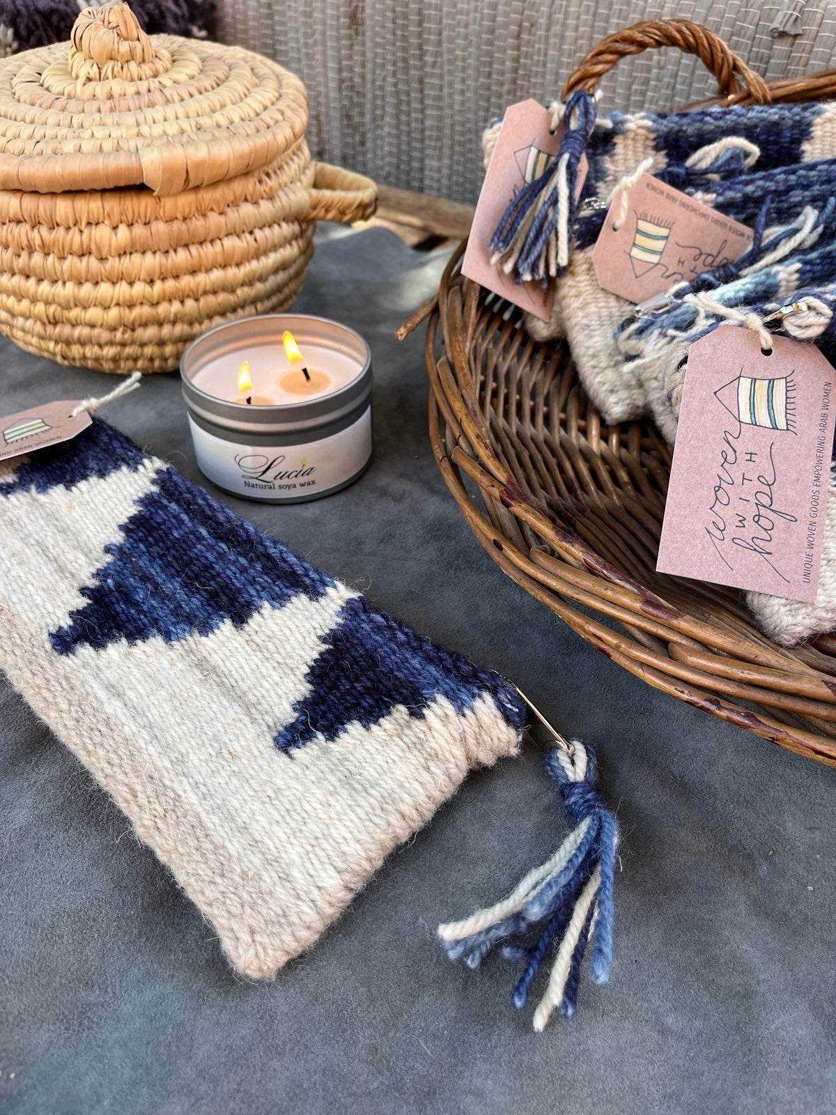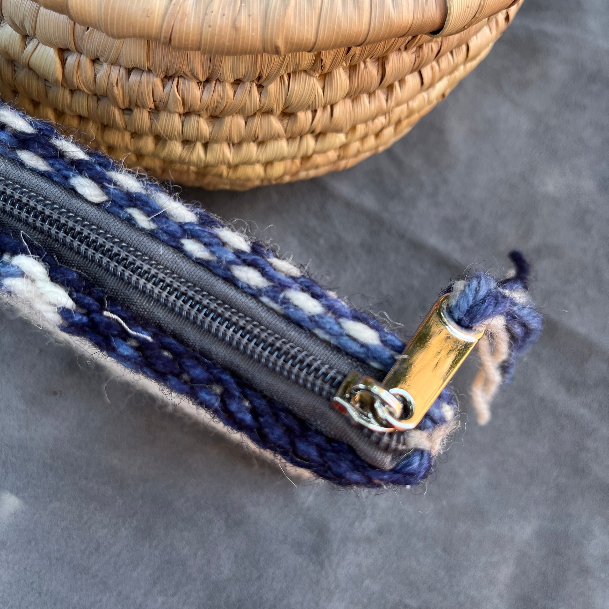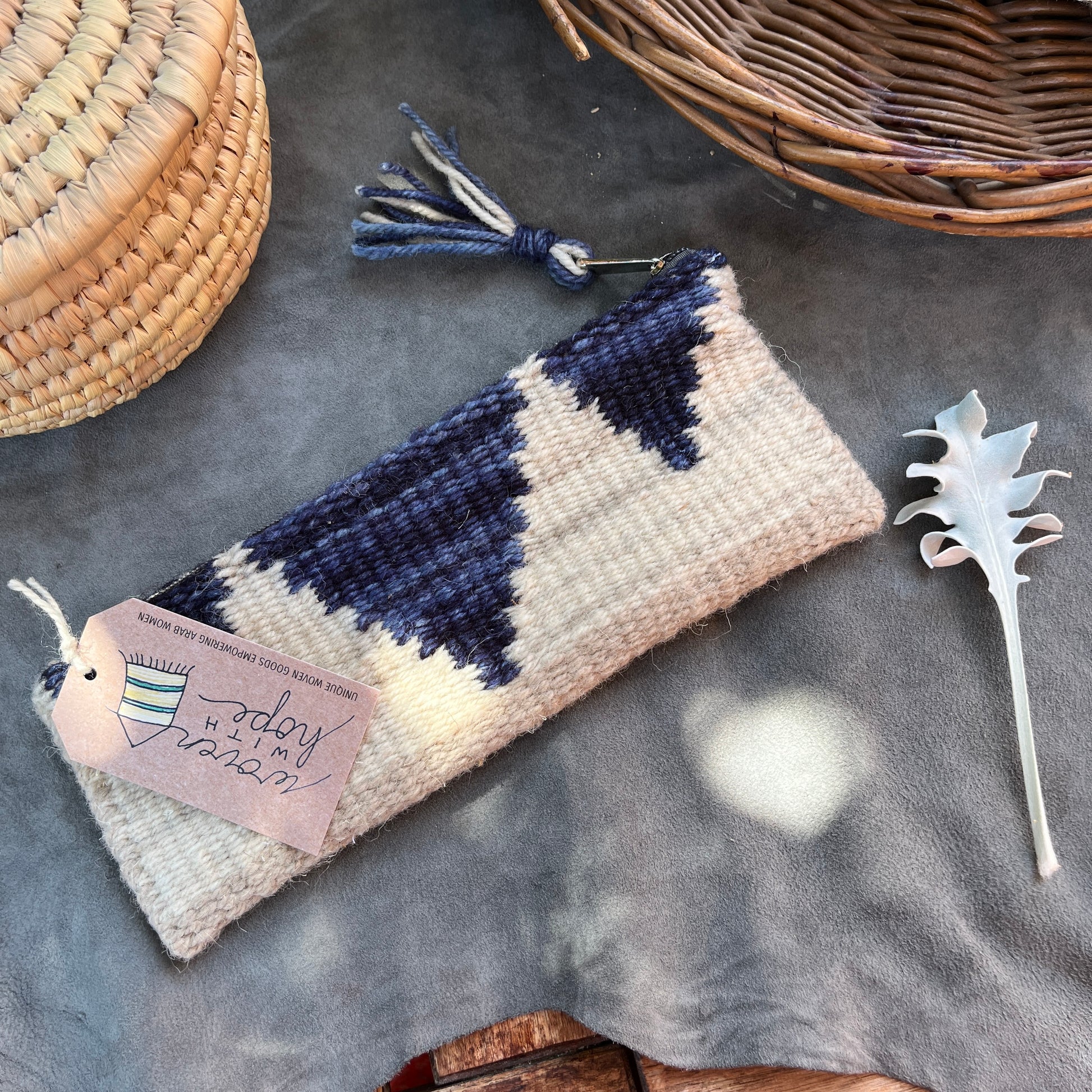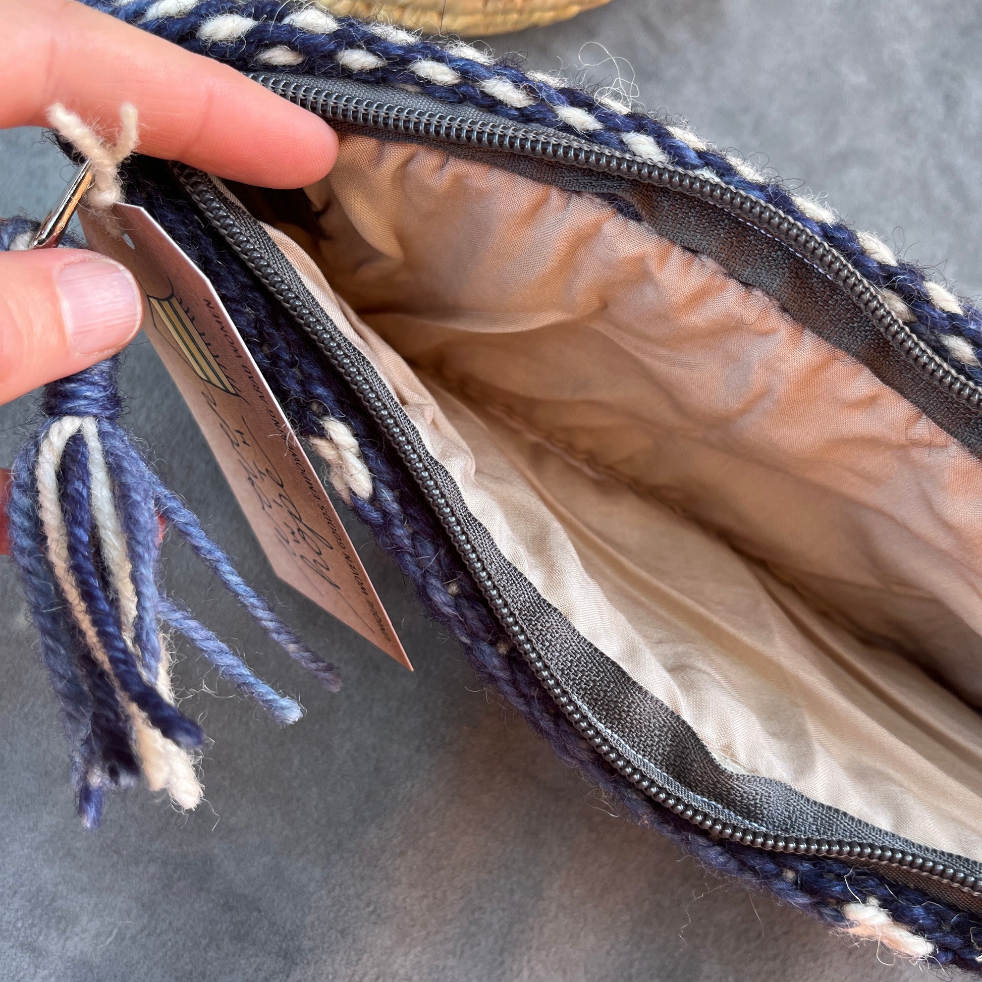 These zipper pouches are the perfect size to use as a divider in a larger bag, but also work beautifully as a clutch on their own. Big enough to carry smaller smartphones, these pouches partner well with our leather card wallet to keep cards and cash organized. The body of this small bag is hand-woven and then sewn together with a cotton liner and zipper to create a unique and quality clutch.